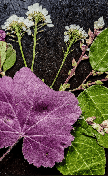 Pressed flowers and wool pieces in natural beauty.